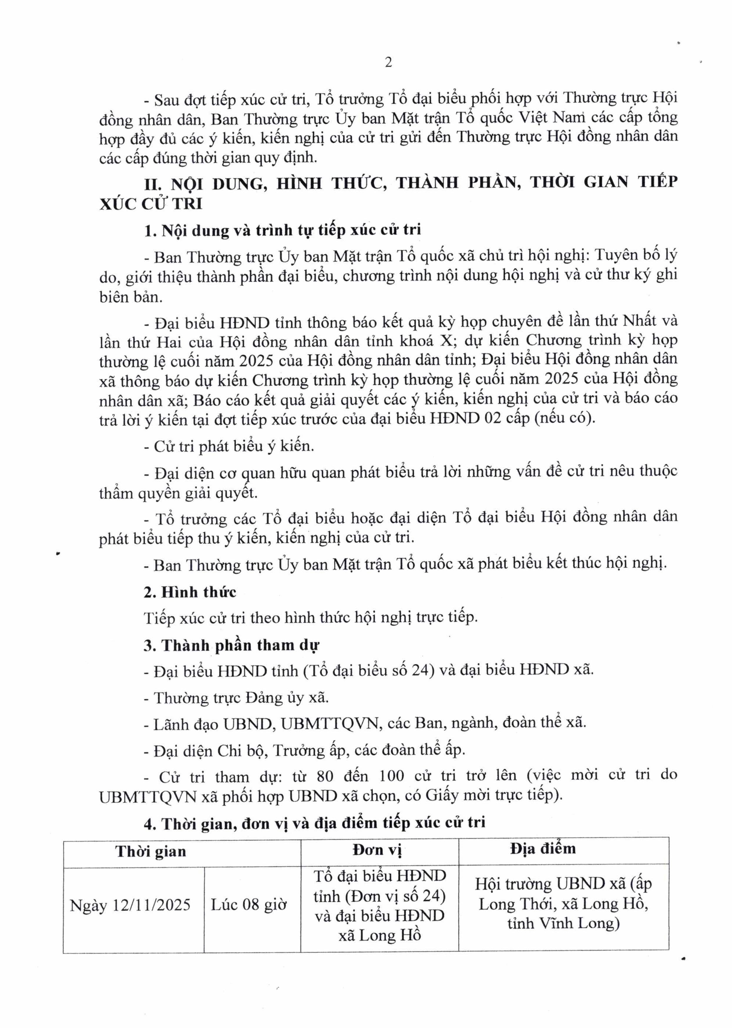 Kế hoạch tiếp xúc cử tri trước kỳ họp cuối năm 2025