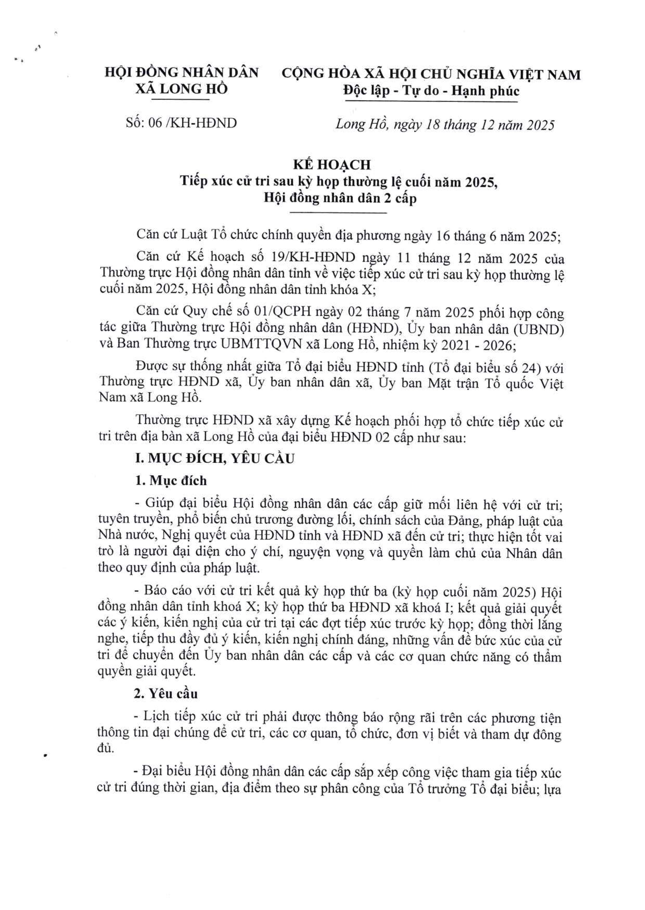 Kế hoạch tiếp xúc cử tri sau kỳ họp thường lệ cuối năm 2025 của HĐND 2 cấp